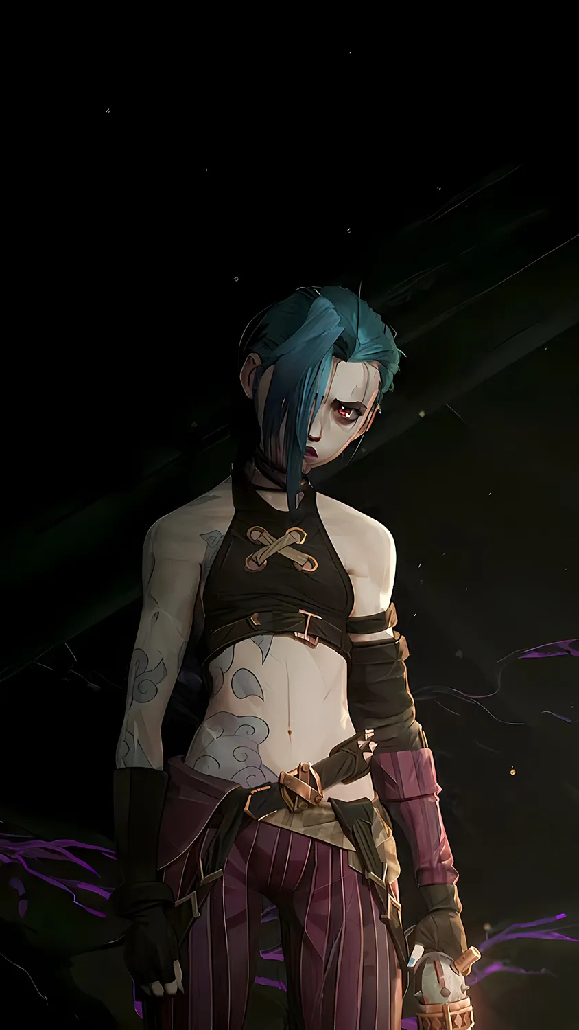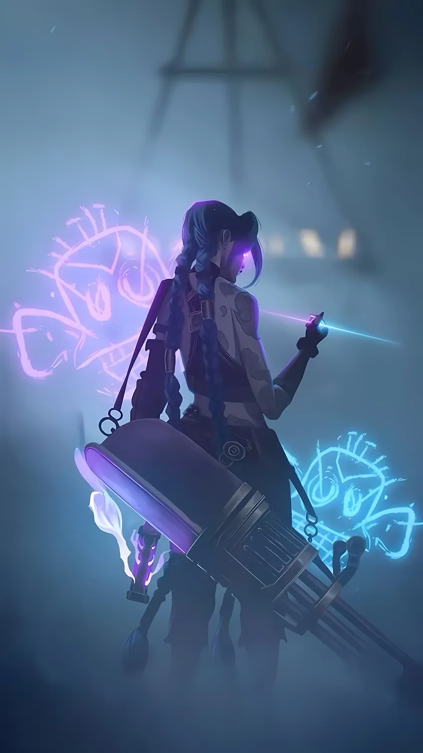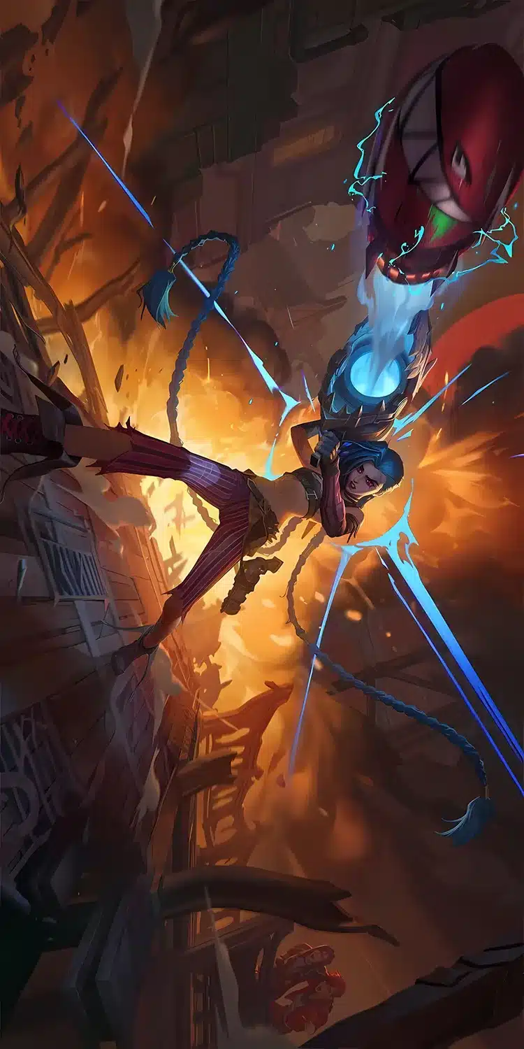 جینکس، یکی از محبوبترین شخصیتهای آرکین، در والپیپرهای متنوعی به تصویر کشیده شده است. همچنین، رنگهای بنفش و آبی غالب در پسزمینه، هویت زائون را به خوبی منتقل میکند. به علاوه، جزئیات اسلحهها و لباس جینکس، با وضوح 4K کاملاً قابل مشاهده است.