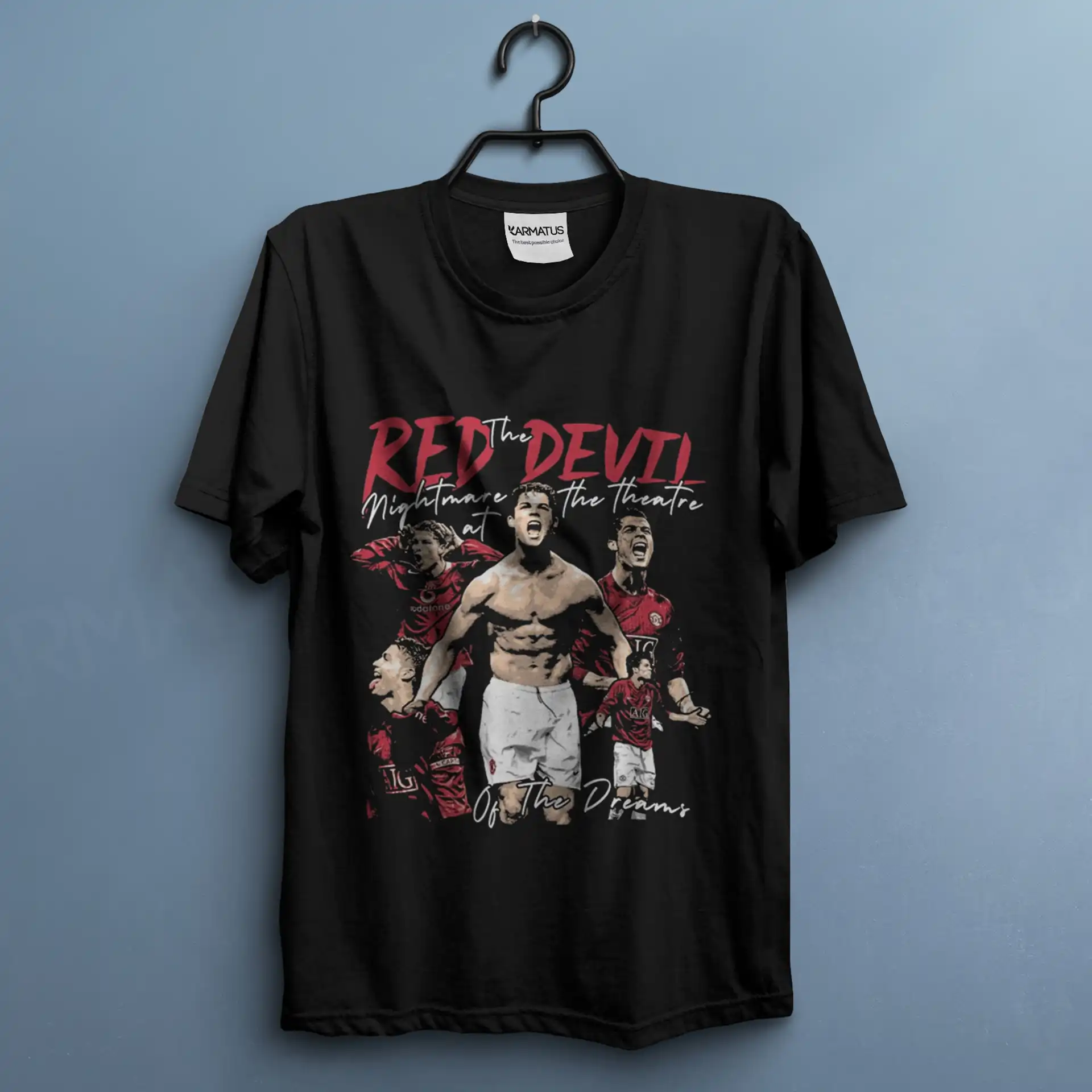 • در کارماتوس، کنتراست رنگ‌ها مهم است؛ طرح شما متناسب با رنگ تیشرت ادیت می‌شود تا بهترین نمایش را داشته باشد.