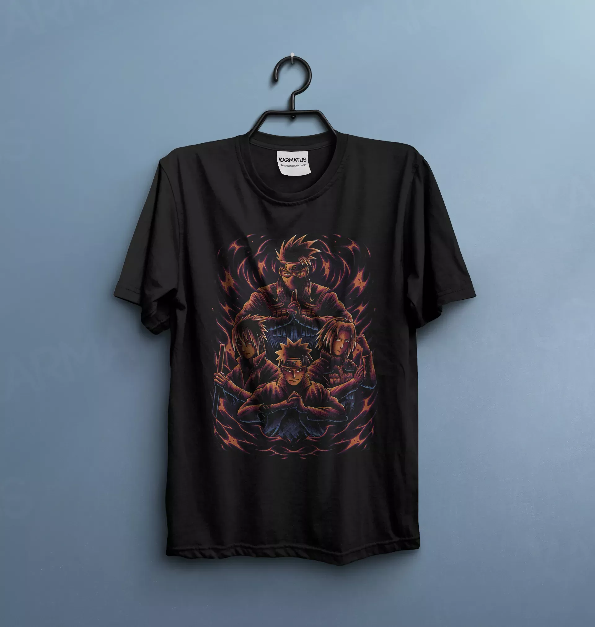 • در کارماتوس، کنتراست رنگ‌ها مهم است؛ طرح شما متناسب با رنگ تیشرت ادیت می‌شود تا بهترین نمایش را داشته باشد.