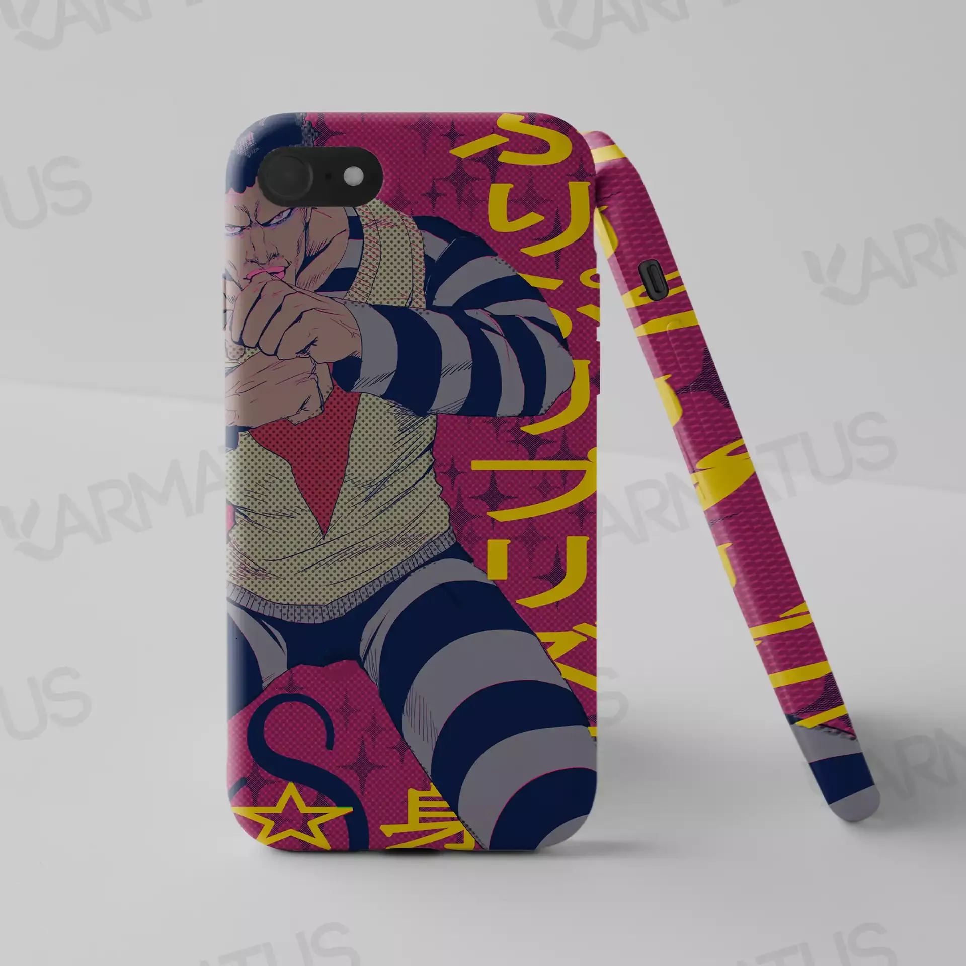 3. قاب‌های موبایل با طرح‌های وان پانچ من: قاب‌های موبایل "کارماتوس" با تصاویر مختلف از سایتاما و دیگر شخصیت‌ها، این امکان را به شما می‌دهند که همیشه با دنیای "وان پانچ من" در ارتباط باشید.