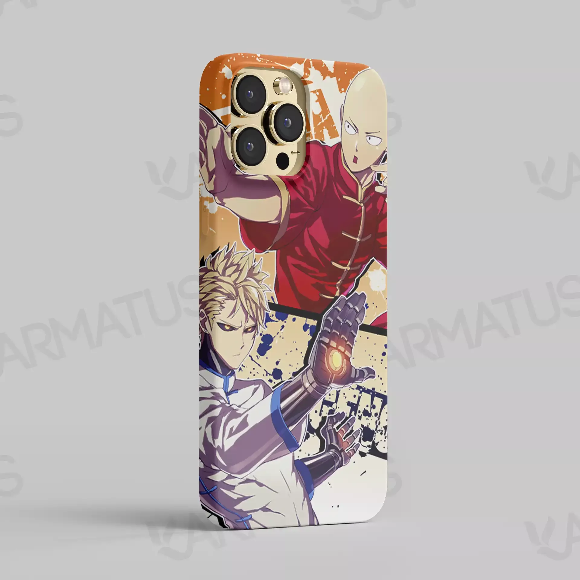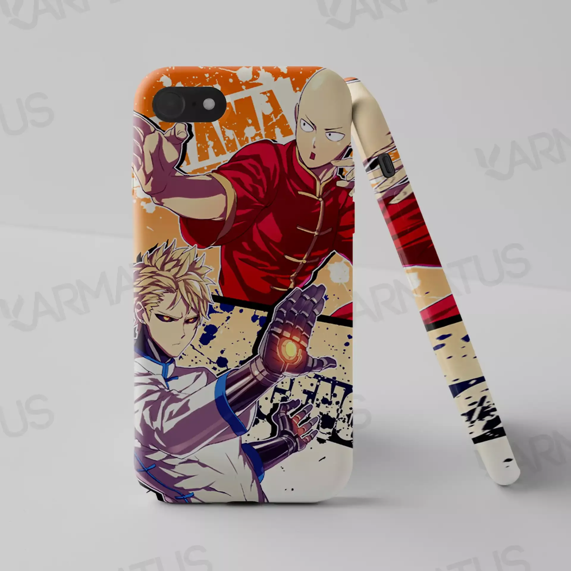3. قاب‌های موبایل با طرح‌های وان پانچ من: قاب‌های موبایل "کارماتوس" با تصاویر مختلف از سایتاما و دیگر شخصیت‌ها، این امکان را به شما می‌دهند که همیشه با دنیای "وان پانچ من" در ارتباط باشید.