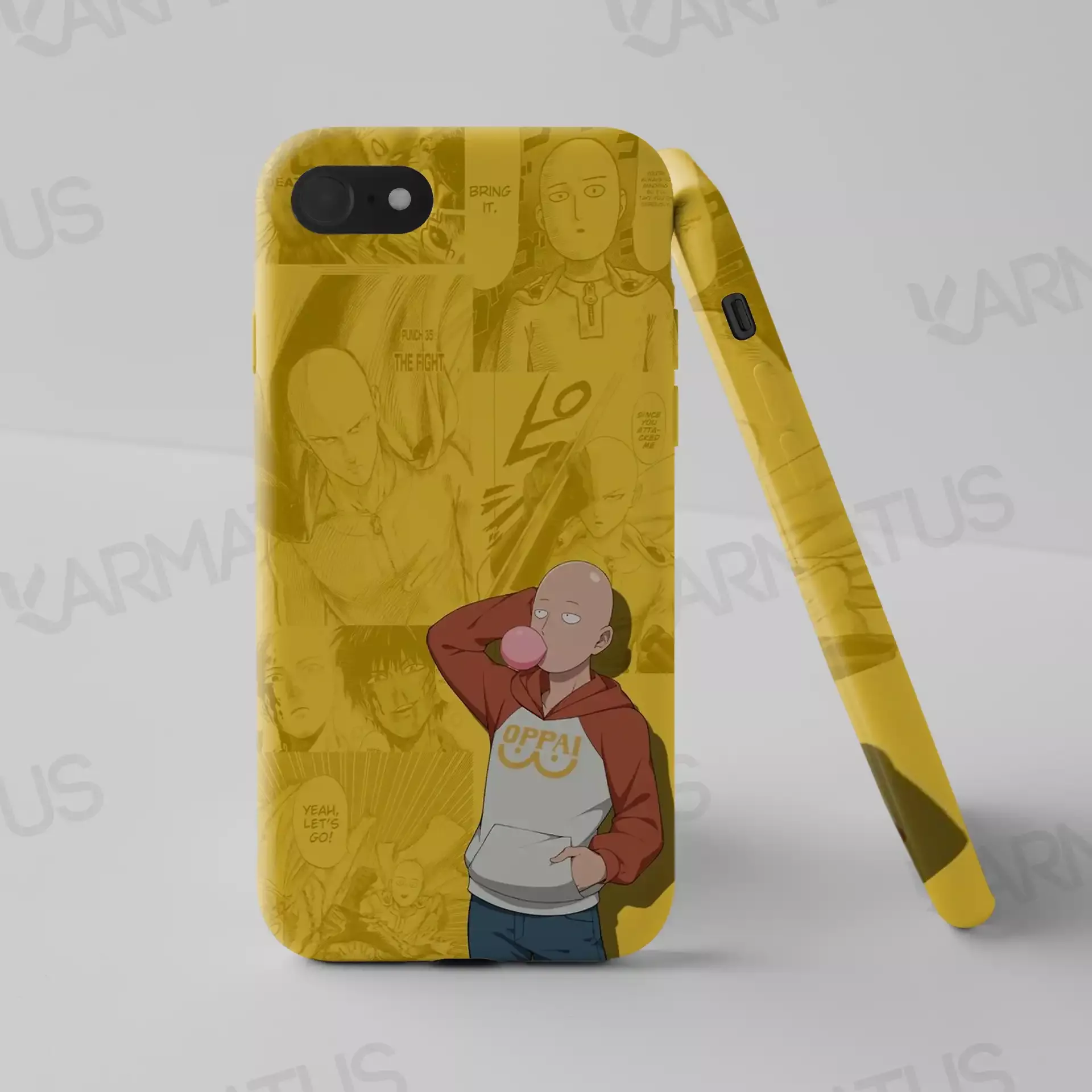 3. قاب‌های موبایل با طرح‌های وان پانچ من: قاب‌های موبایل "کارماتوس" با تصاویر مختلف از سایتاما و دیگر شخصیت‌ها، این امکان را به شما می‌دهند که همیشه با دنیای "وان پانچ من" در ارتباط باشید.