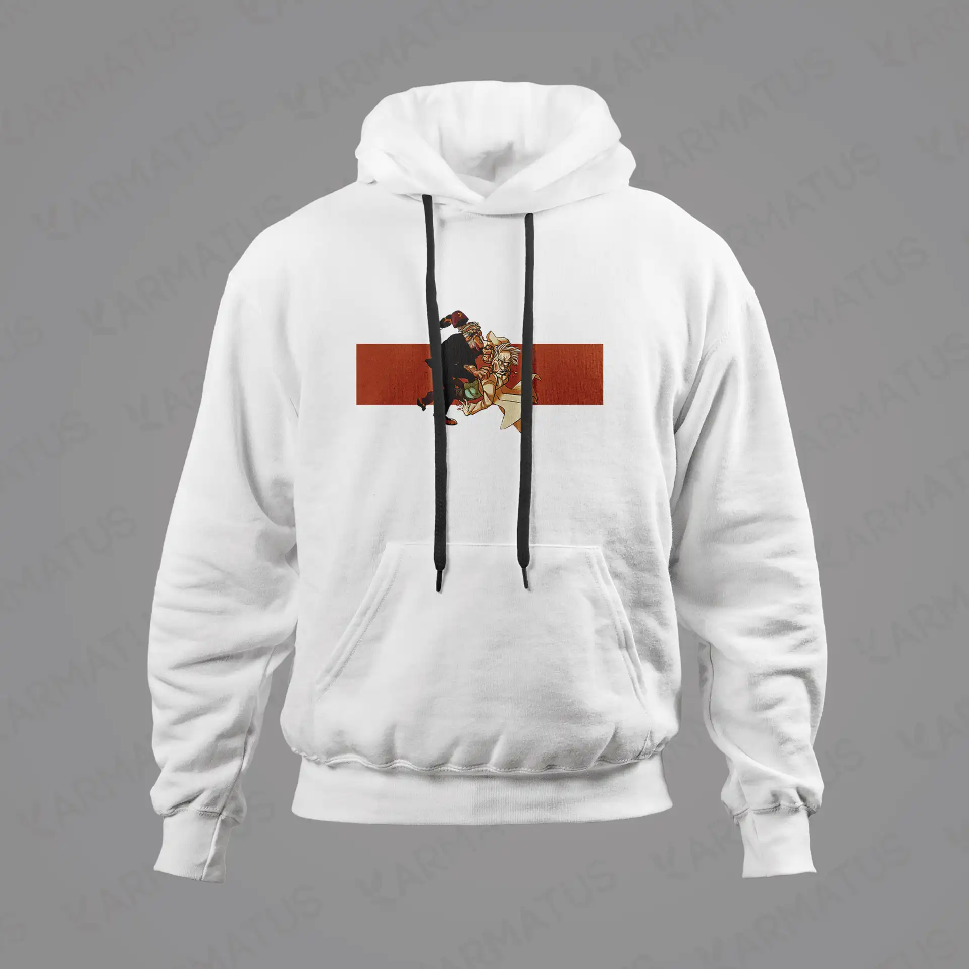 • در کارماتوس، کنتراست رنگ‌ها مهم است؛ طرح شما متناسب با رنگ هودی ادیت می‌شود تا بهترین نمایش را داشته باشد.