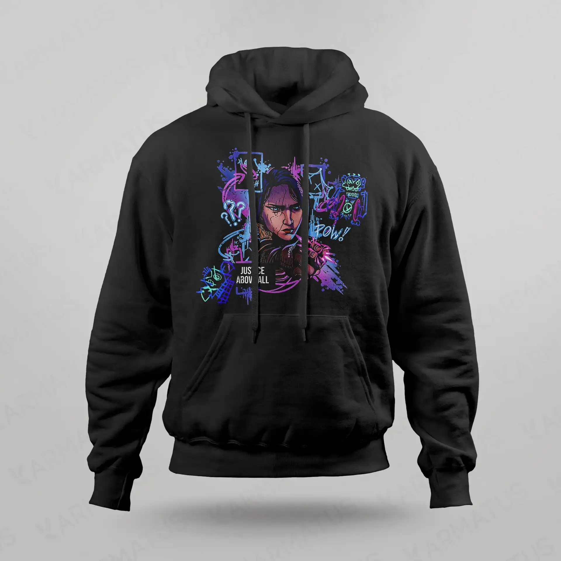 • در کارماتوس، کنتراست رنگ‌ها مهم است؛ طرح شما متناسب با رنگ هودی ادیت می‌شود تا بهترین نمایش را داشته باشد.