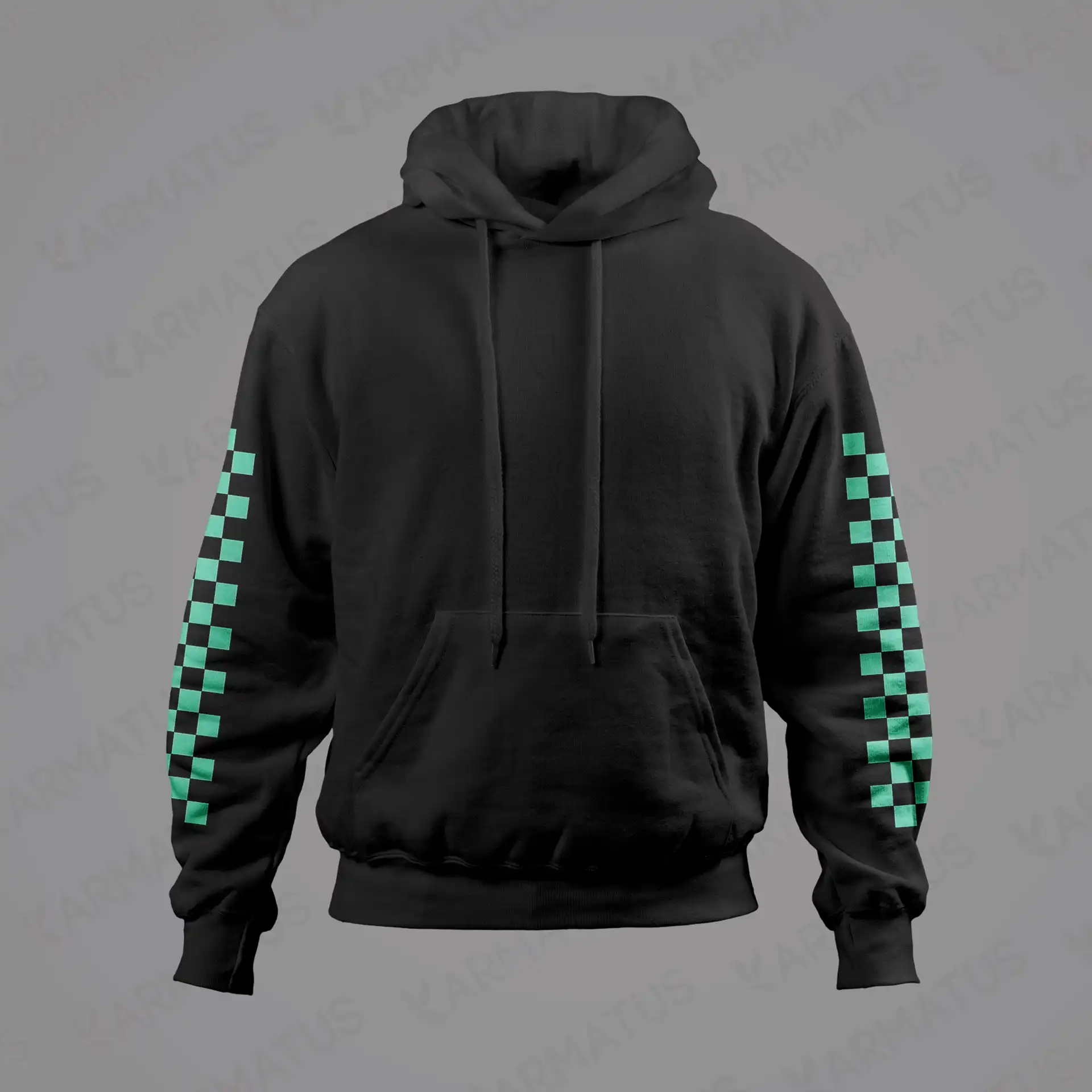 • در کارماتوس، کنتراست رنگ‌ها مهم است؛ طرح شما متناسب با رنگ هودی ادیت می‌شود تا بهترین نمایش را داشته باشد.