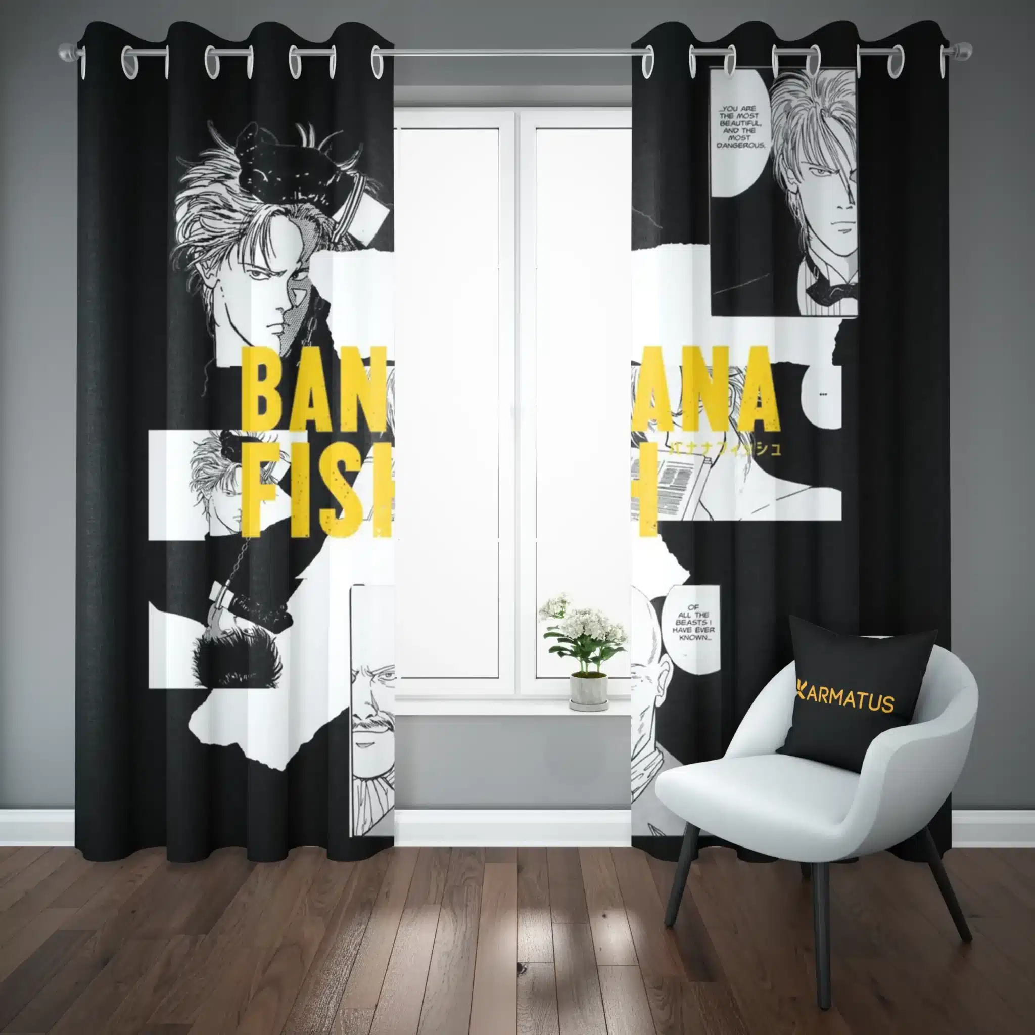 ماندگاری بسیار بالای طرح چاپی پرده پانچ انیمه بنانا فیش Banana fish