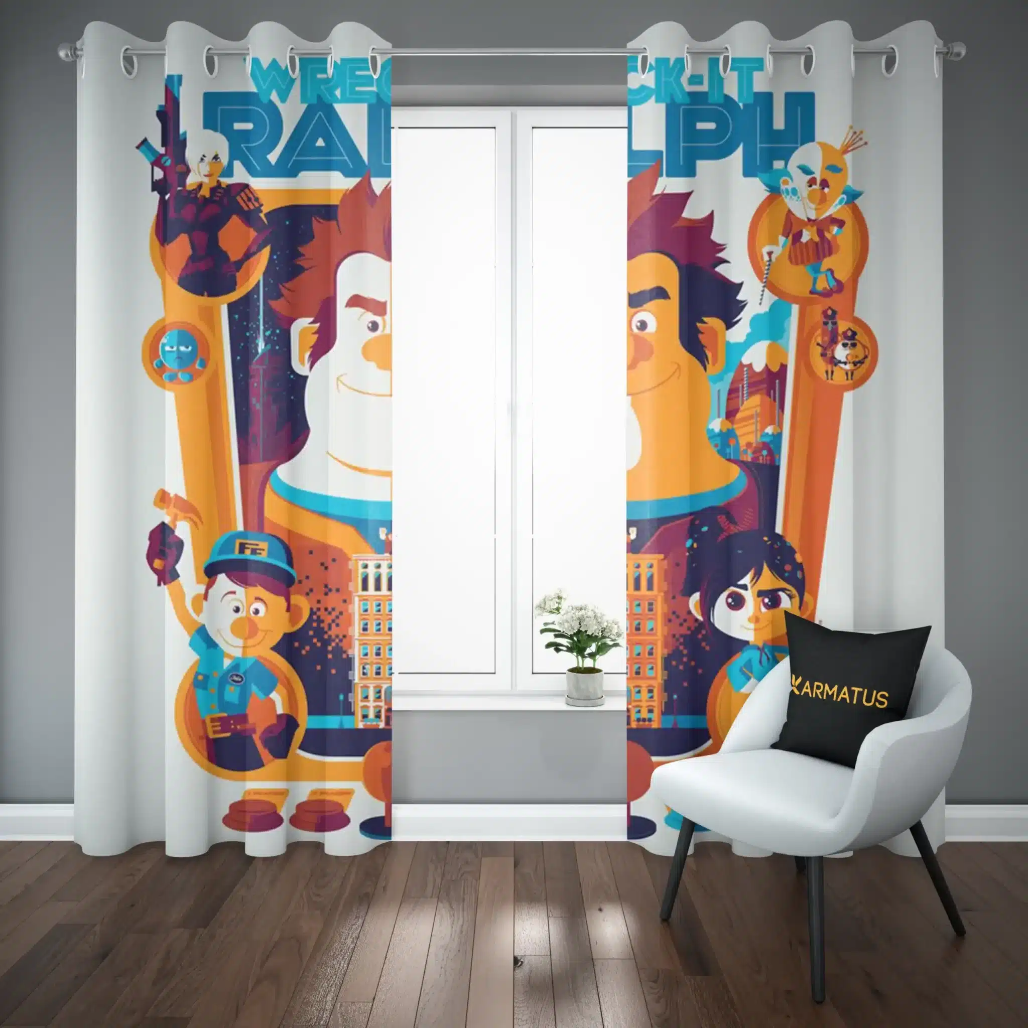 ماندگاری بسیار بالای طرح چاپی پرده پانچ رالف خرابکار Wreck-It Ralph