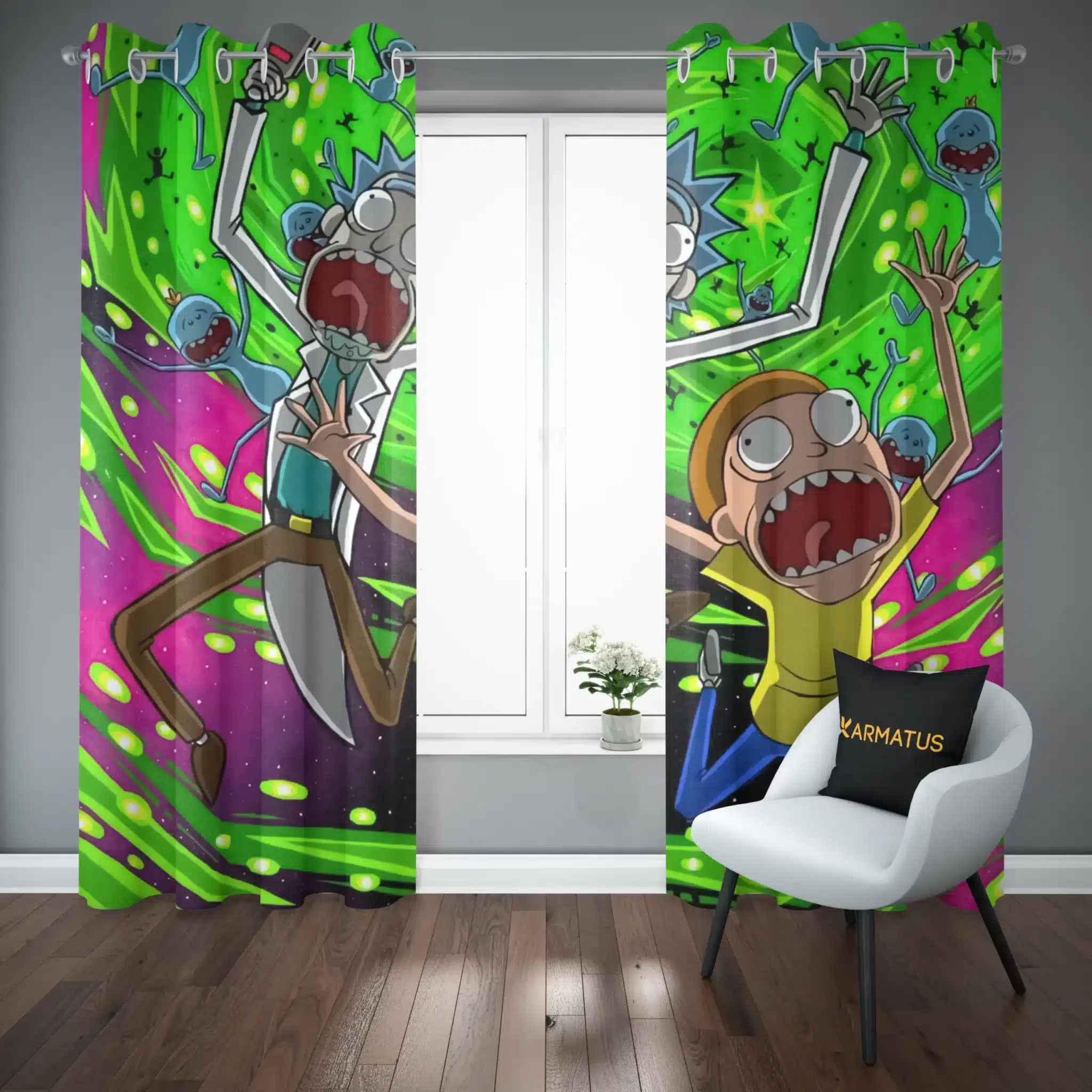 ماندگاری بسیار بالای طرح چاپی پرده پانچ ریک و مورتی Rick And Morty