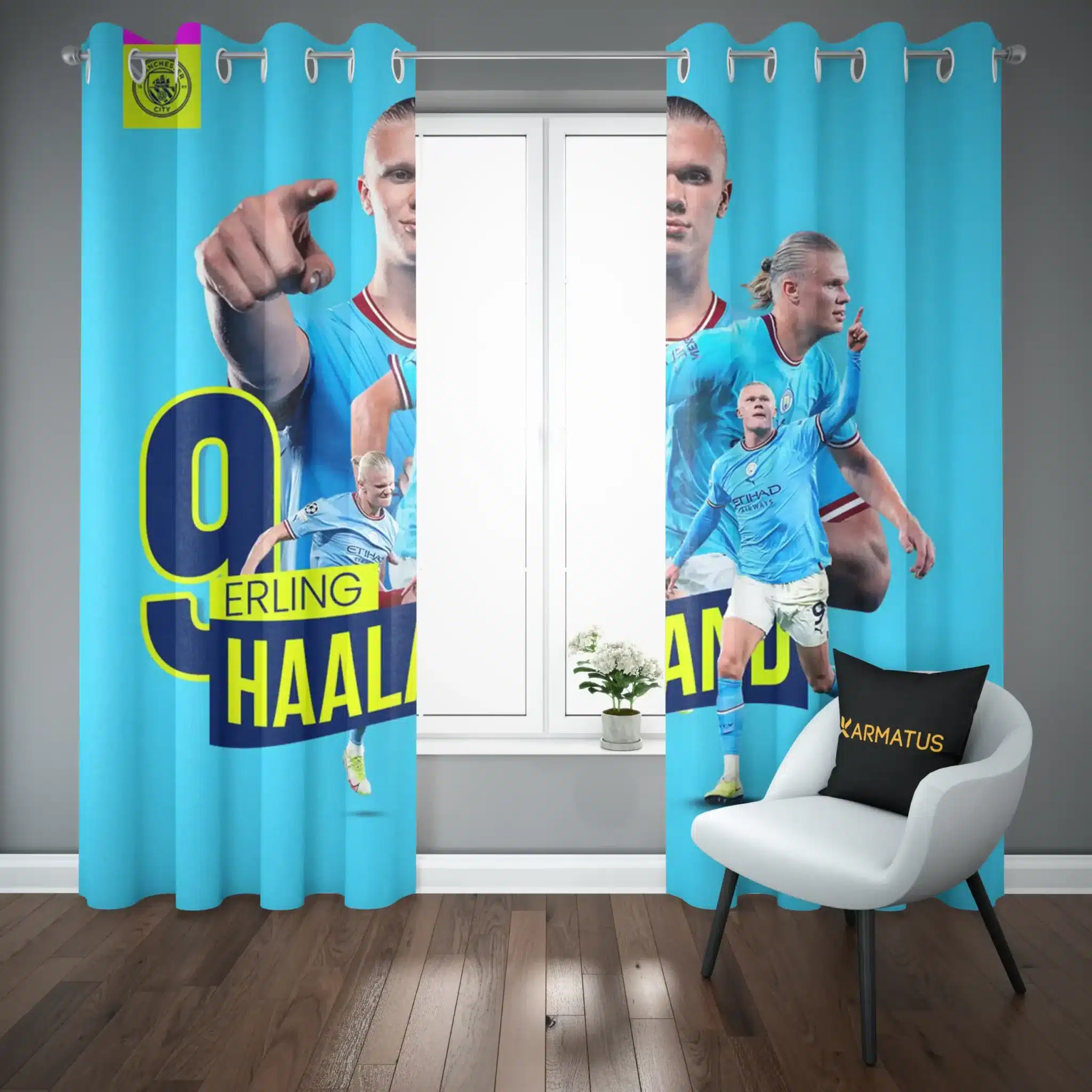 ماندگاری بسیار بالای طرح چاپی پرده پانچ طرح ارلینگ هالند Erling Haaland
