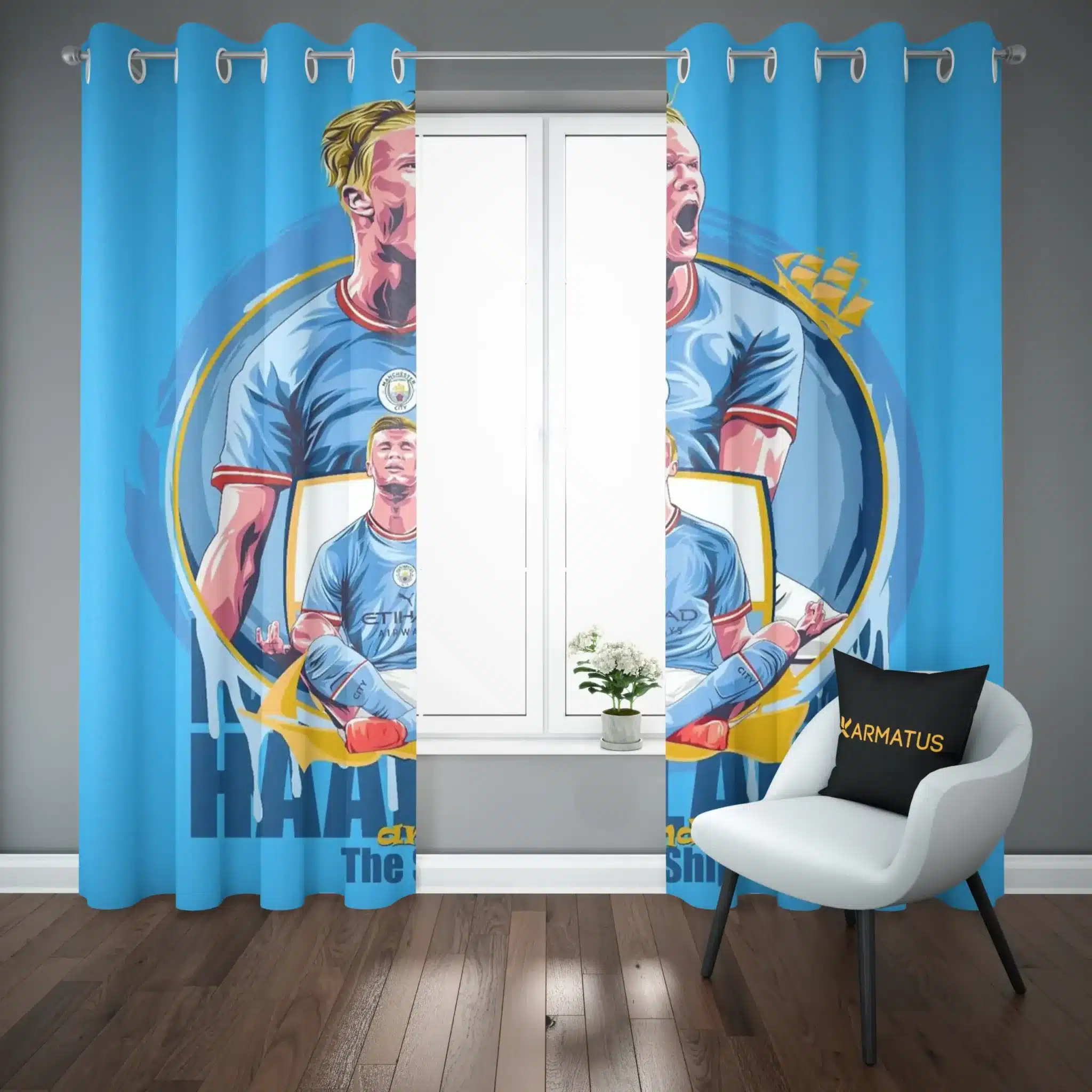 ماندگاری بسیار بالای طرح چاپی پرده پانچ طرح ارلینگ هالند Erling Haaland