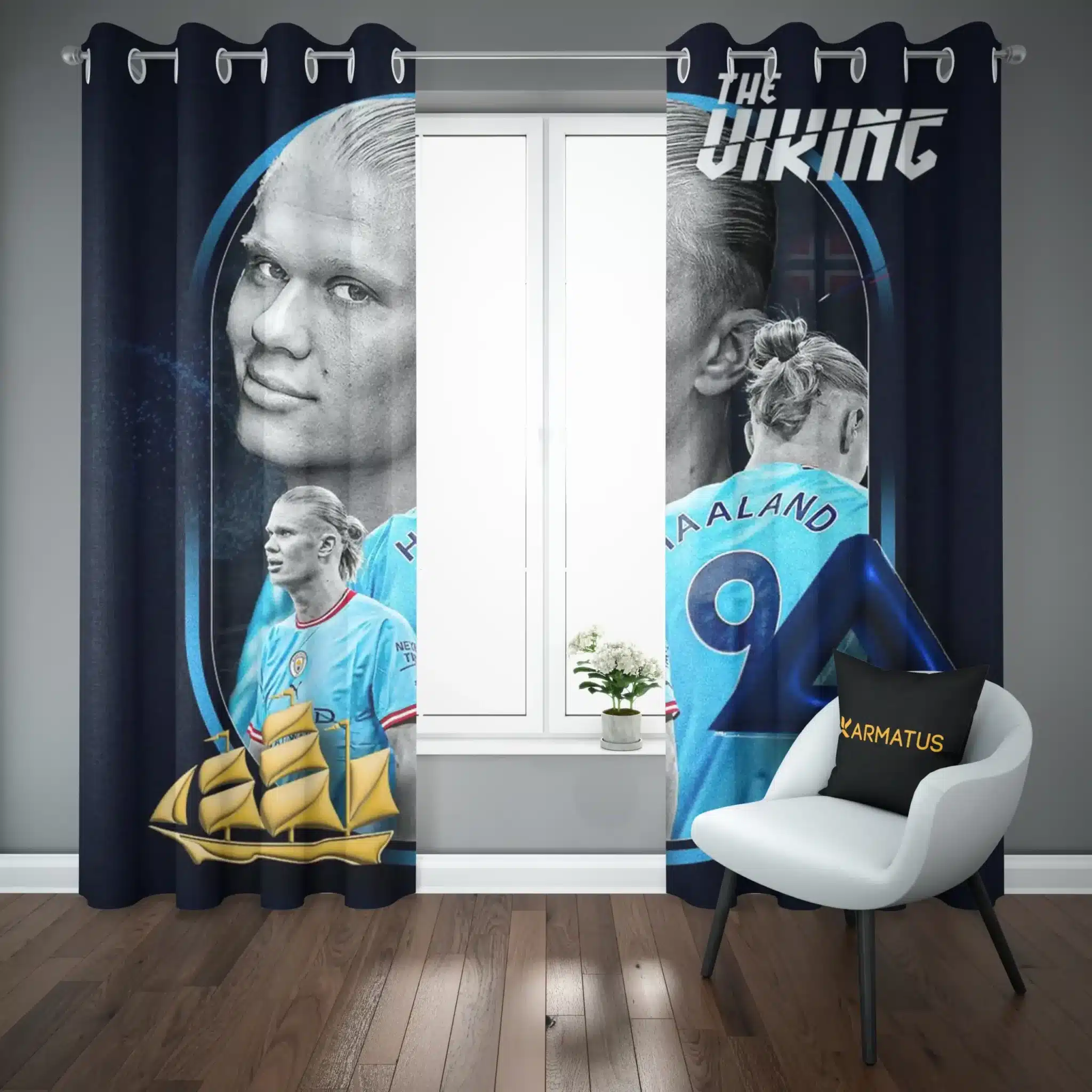 ماندگاری بسیار بالای طرح چاپی پرده پانچ طرح ارلینگ هالند Erling Haaland