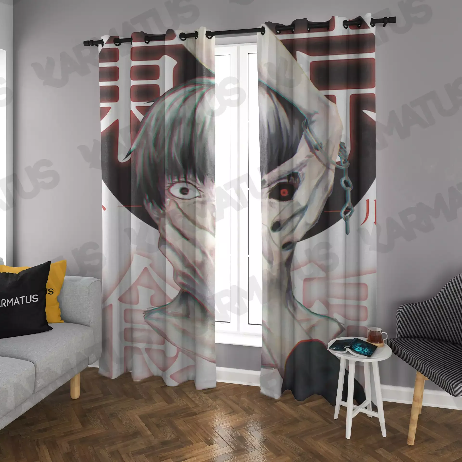 ماندگاری بسیار بالای طرح چاپی پرده پانچ طرح انیمه توکیو غول Tokyo Ghoul