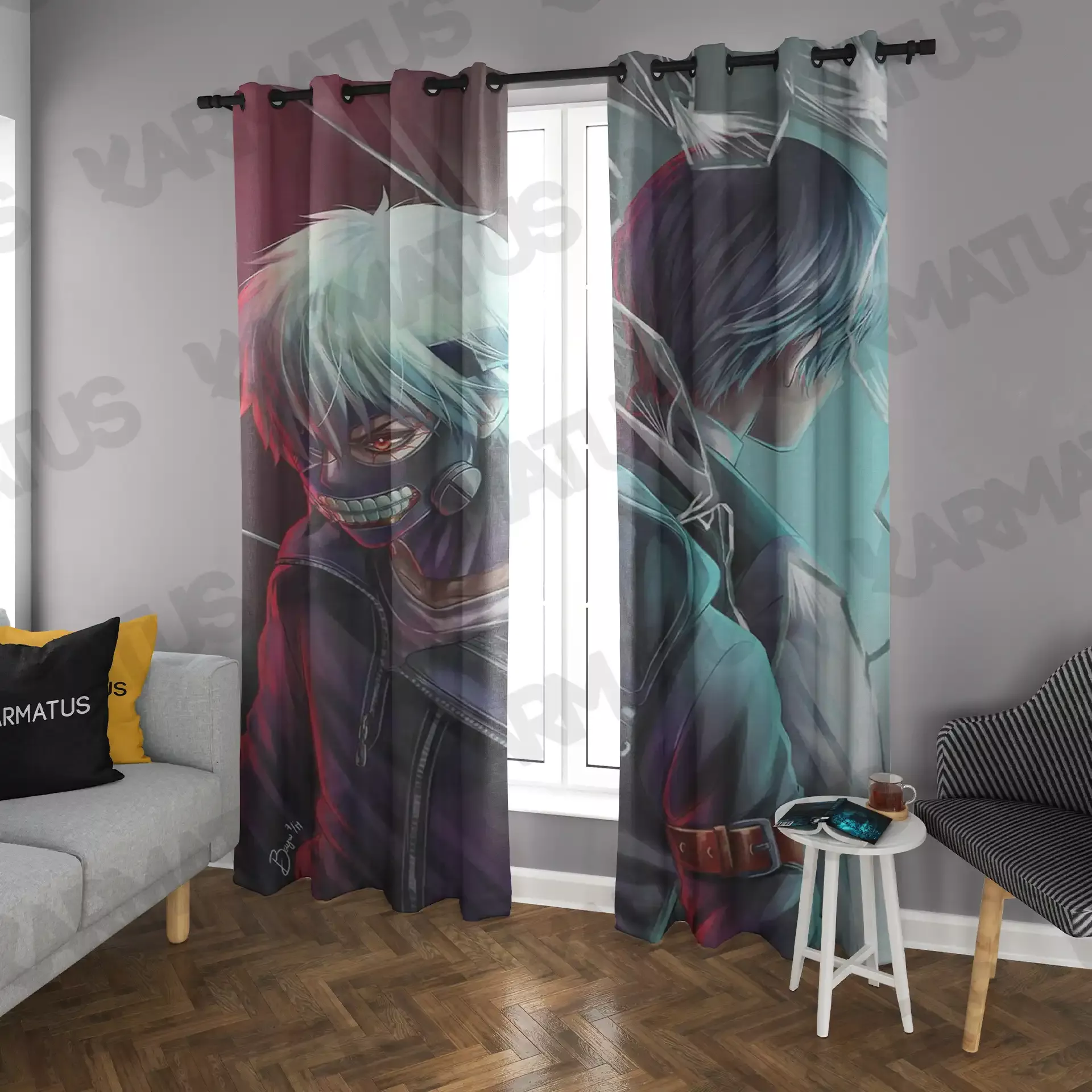 ماندگاری بسیار بالای طرح چاپی پرده پانچ طرح انیمه توکیو غول Tokyo Ghoul
