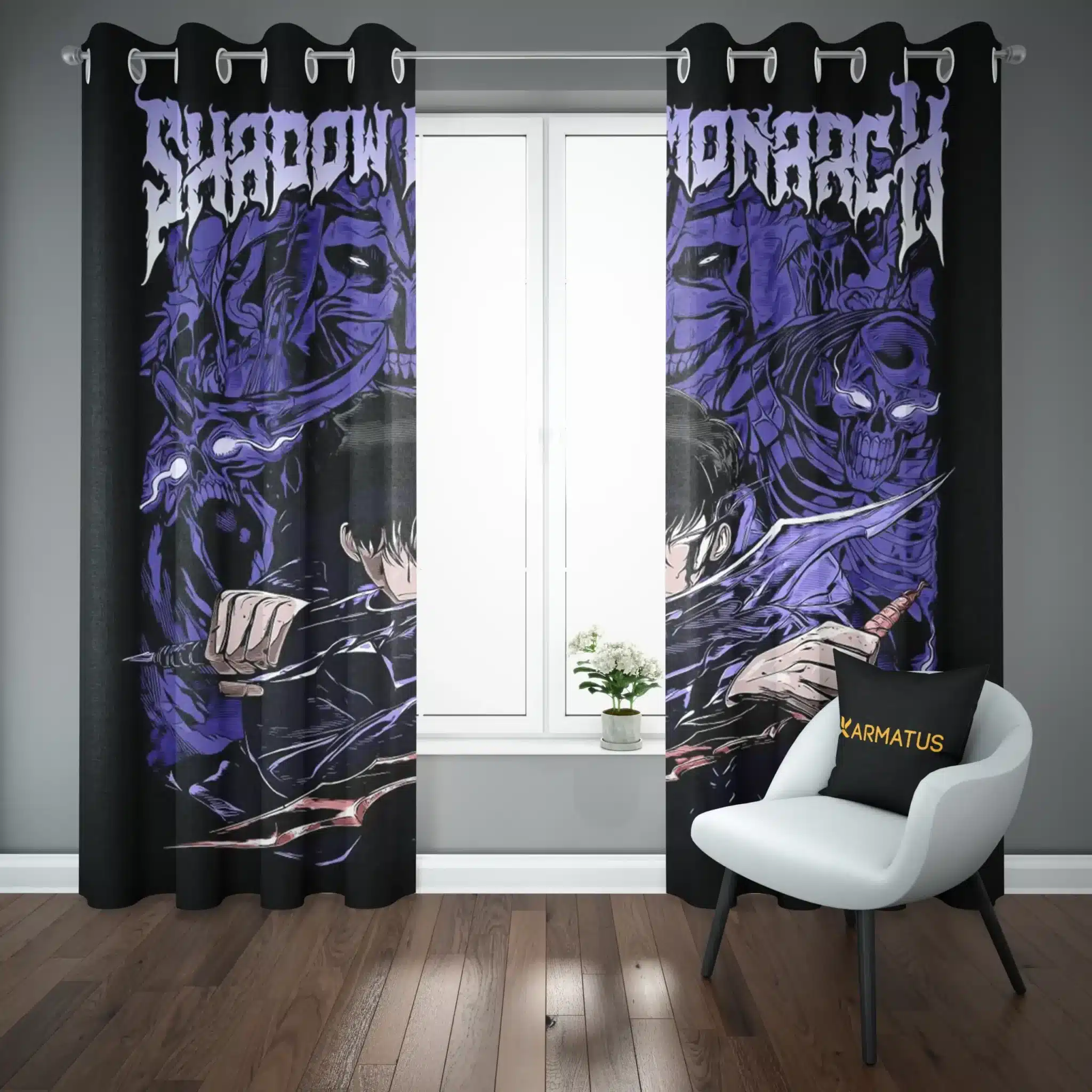 ماندگاری بسیار بالای طرح چاپی پرده پانچ طرح انیمه تک رو Solo Leveling