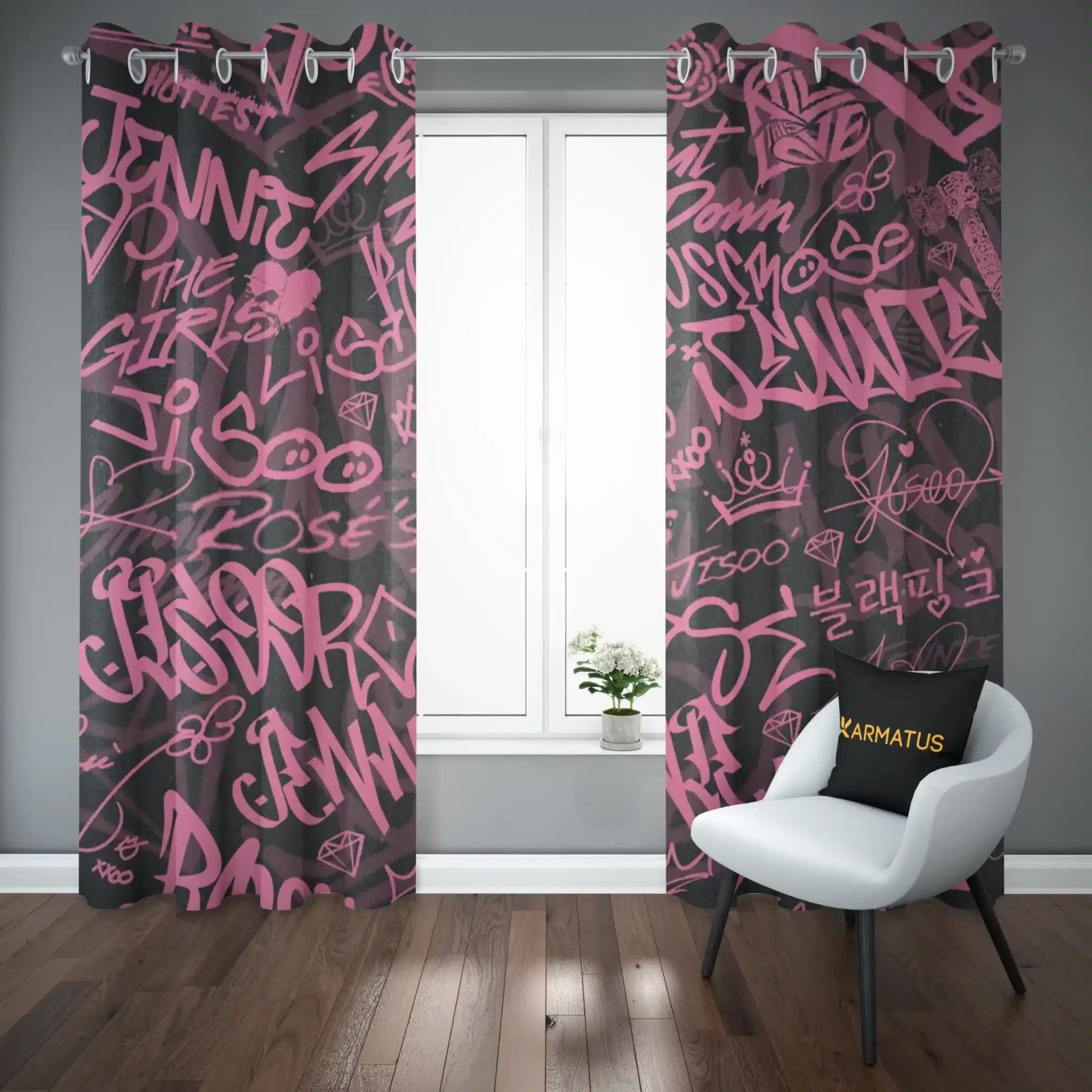ماندگاری بسیار بالای طرح چاپی پرده پانچ طرح بلک پینک Black Pink