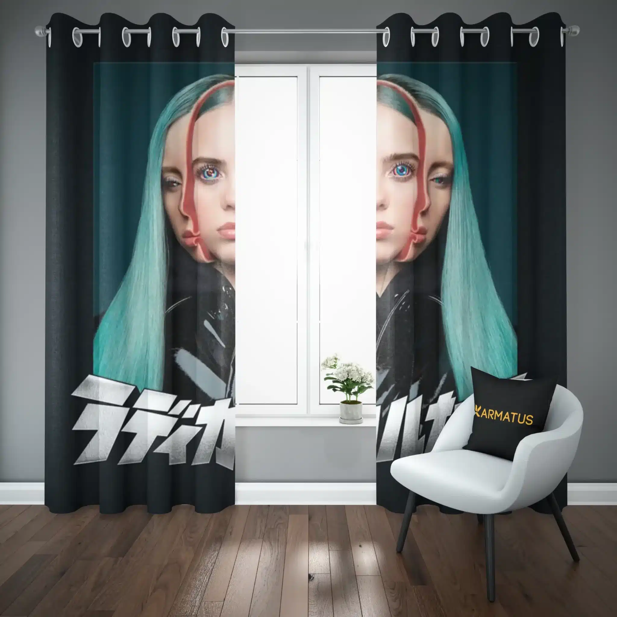 ماندگاری بسیار بالای طرح چاپی پرده پانچ طرح بیلی آیلیش Billie Eilish