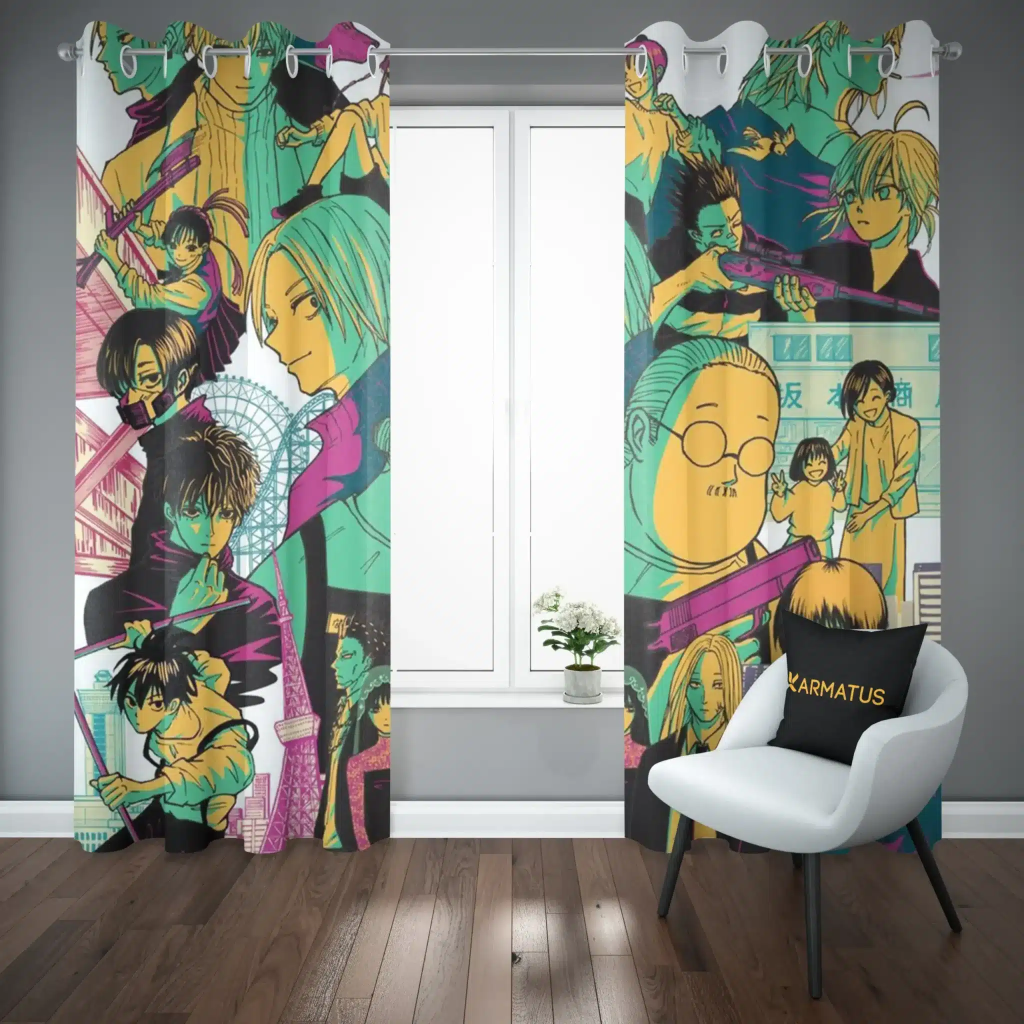 ماندگاری بسیار بالای طرح چاپی پرده پانچ طرح روز های ساکاماتو Sakamoto Days