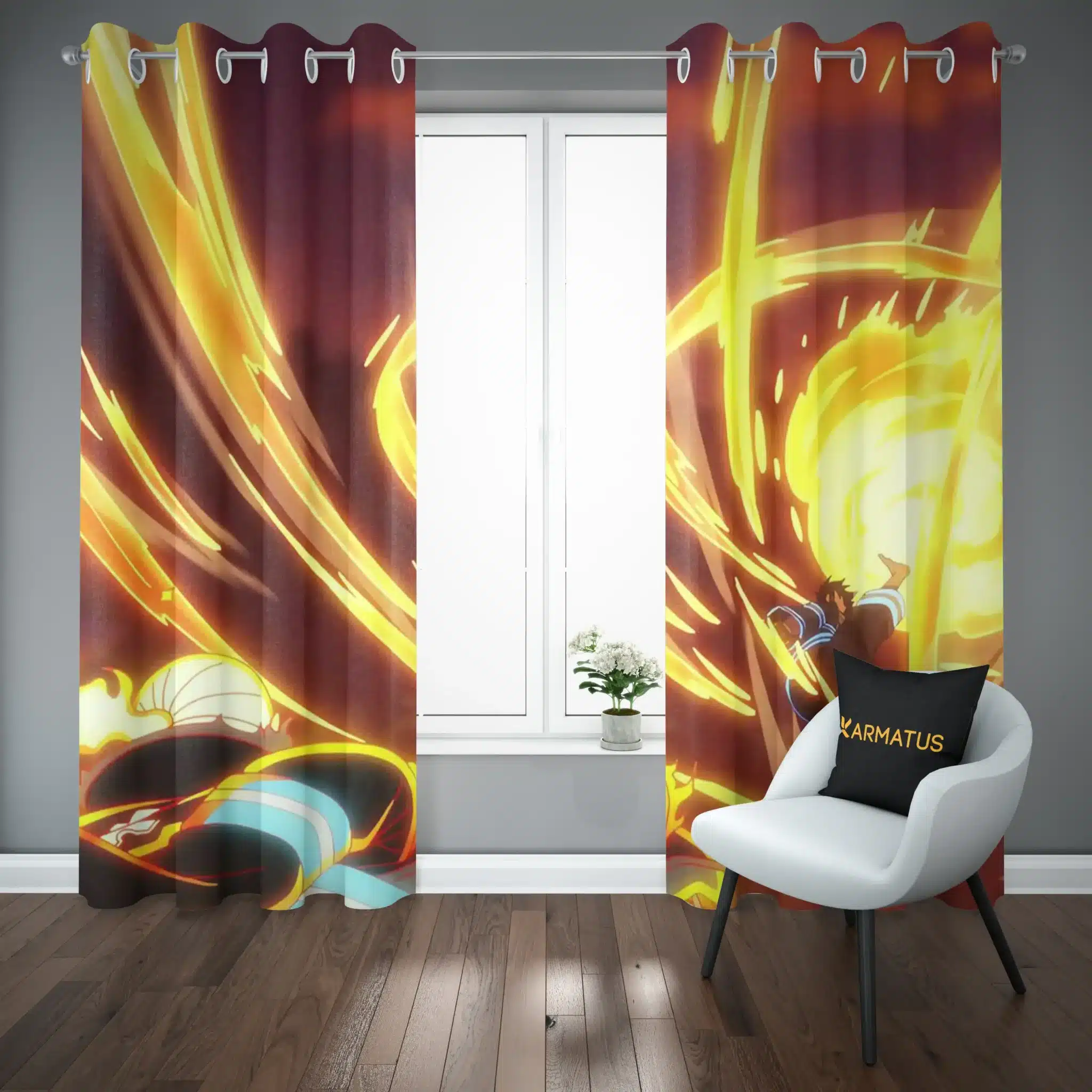 ماندگاری بسیار بالای طرح چاپی پرده پانچ طرح فایر فورس Fire Force