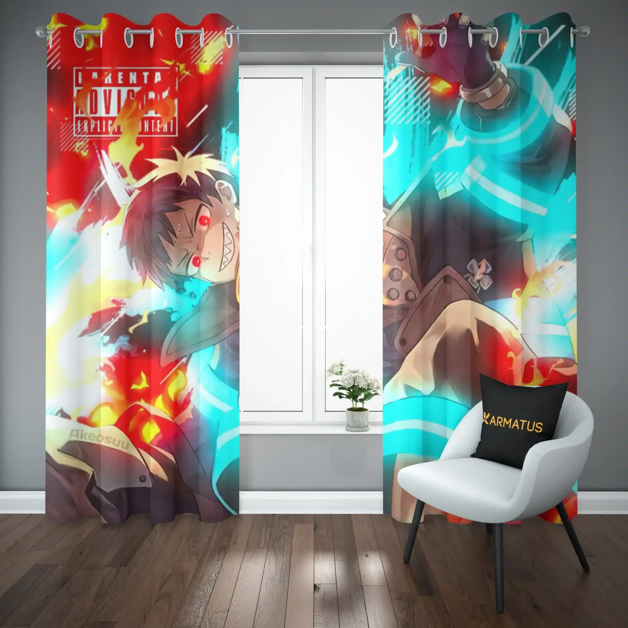 ماندگاری بسیار بالای طرح چاپی پرده پانچ طرح فایر فورس Fire Force