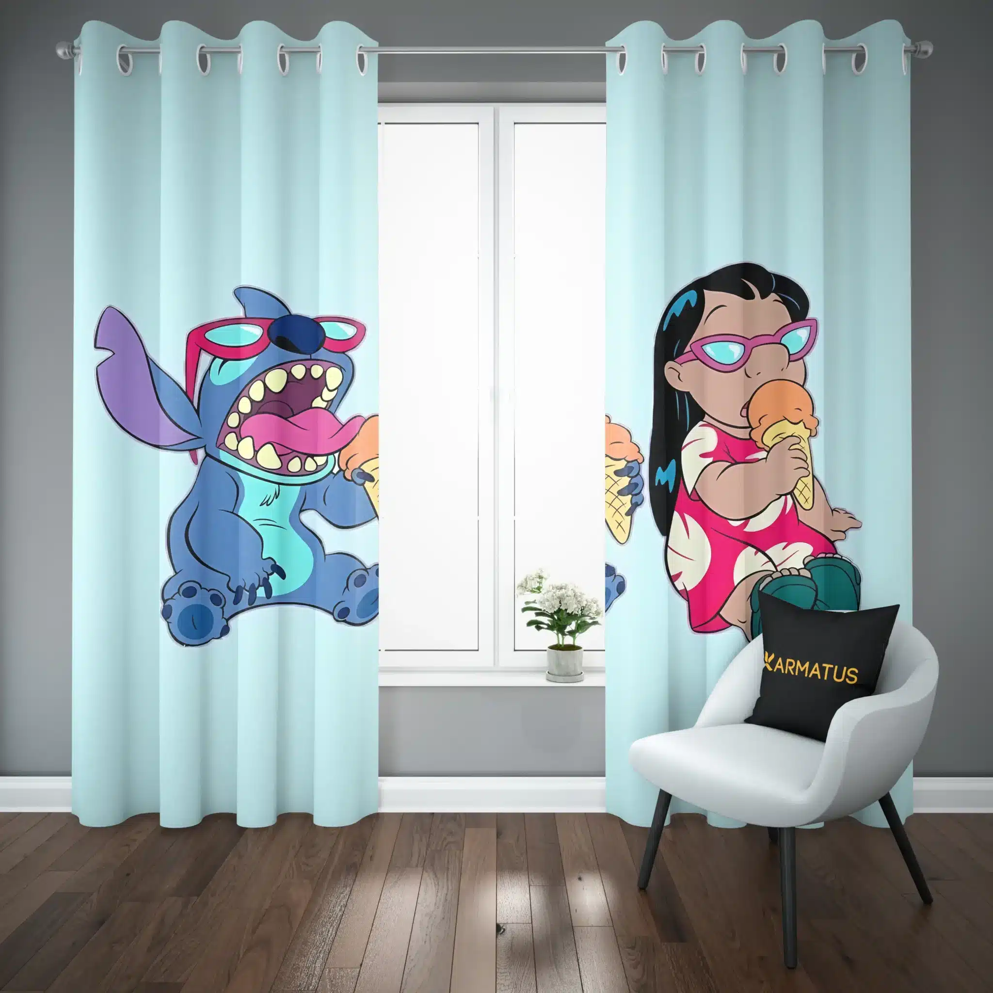 ماندگاری بسیار بالای پرده پانچ طرح لیلو و استیچ Lilo & Stitch