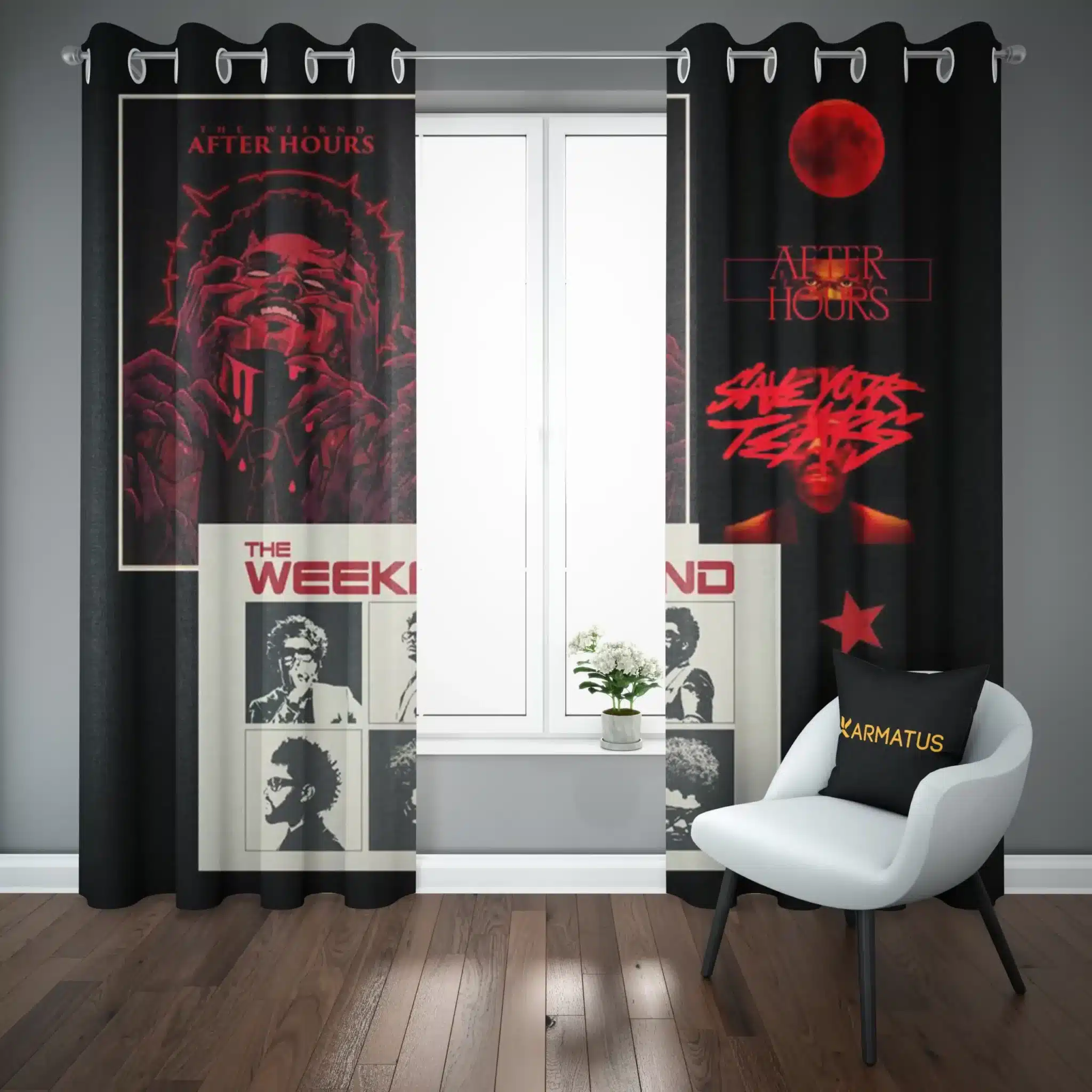 ماندگاری بسیار بالای طرح چاپی پرده پانچ طرح ویکند The weeknd