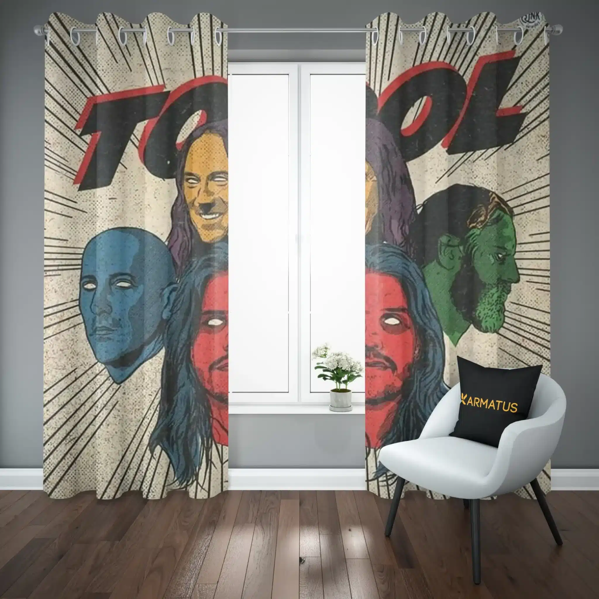 ماندگاری بسیار بالای طرح چاپی پرده پانچ طرح گروه موسیقی تول Tool