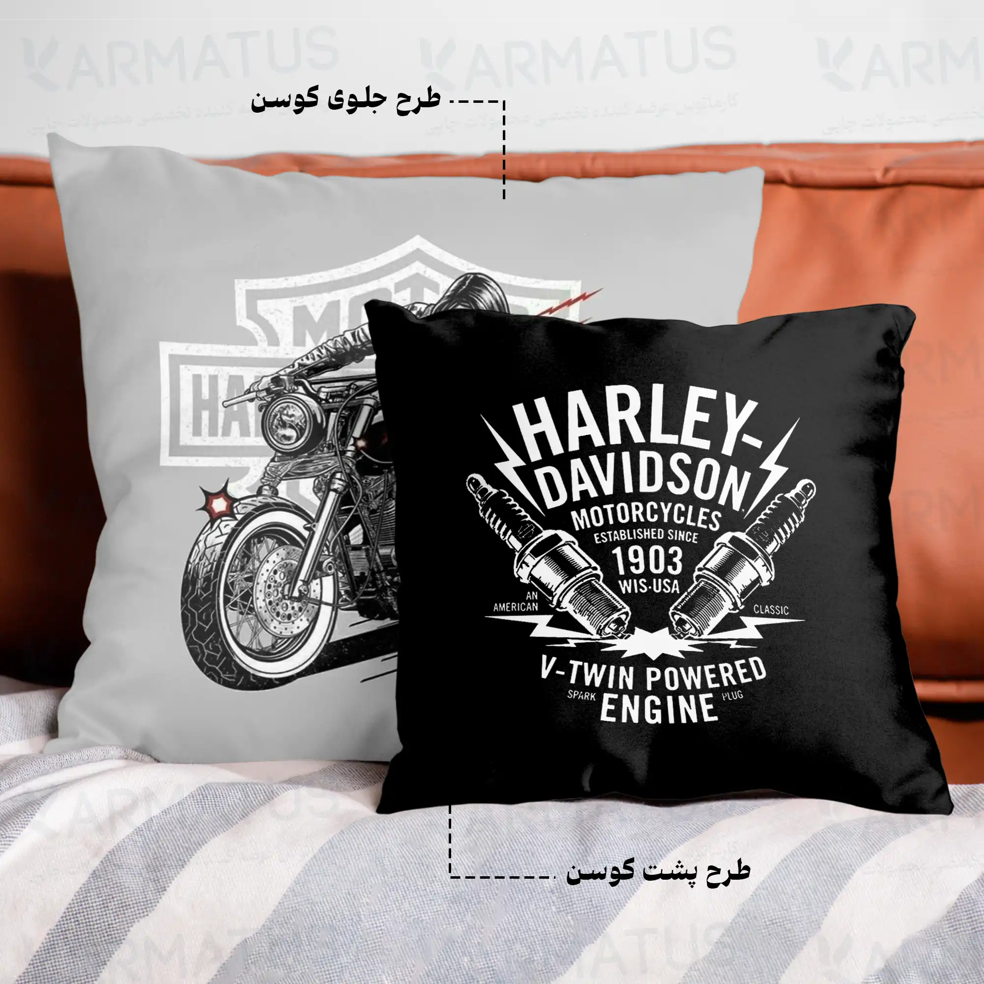 کوسن طرح هارلی دیویدسون Harley davidson : طراحی منحصربهفرد برای علاقمندان موتورسیکلت
