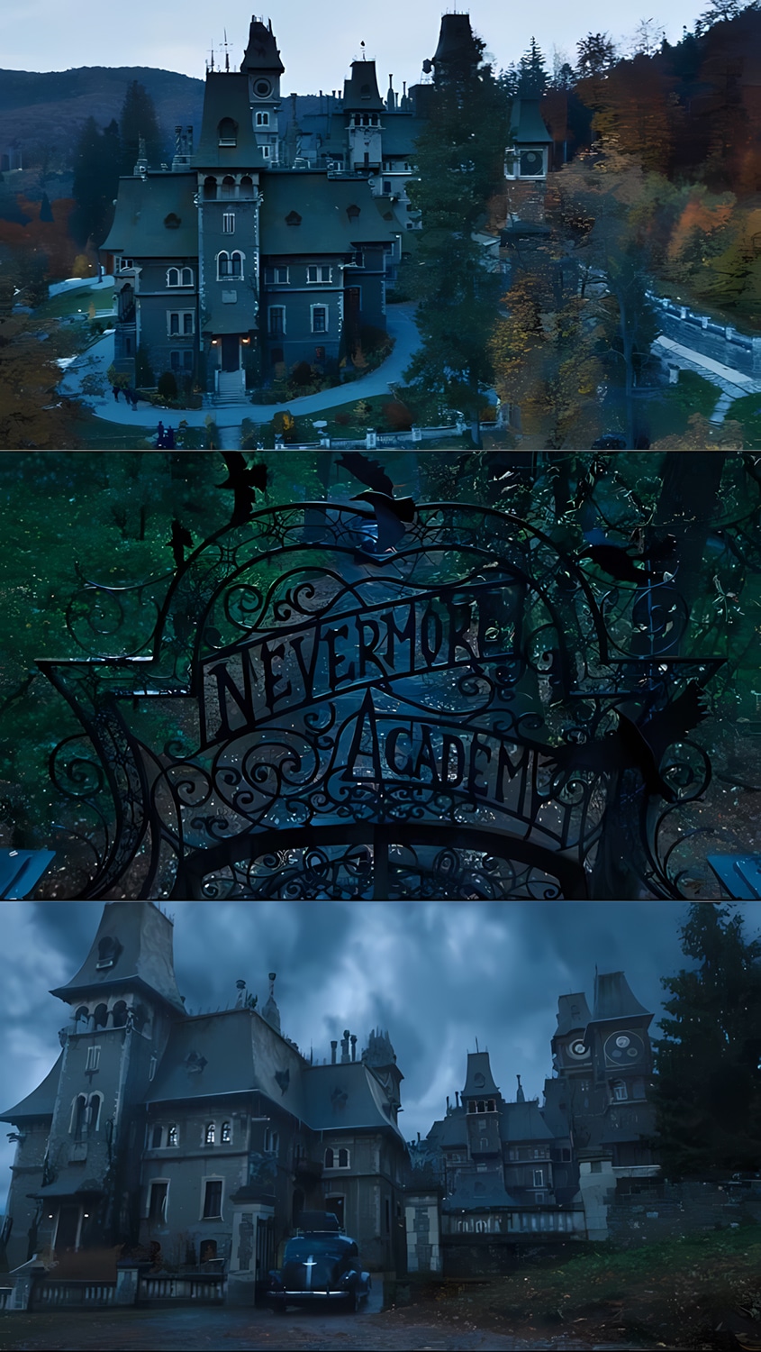 : معماری گوتیک Nevermore Academy در سریال Wednesday - والپیپر Hd