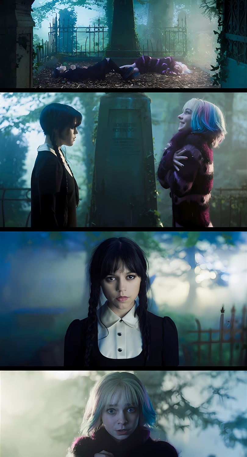 تصاویر از Nevermore Academy، صحنه‌های ترسناک و کمدی، پرتره‌های سینمایی ونزدی و لحظات نمادین مثل رقص افسانه‌ای – همه اینا منتظرته. علاوه بر این، کیفیت 4K باعث میشه هر جزئیات لباس مشکی، چشم‌های تیره و فضای گوتیک رو به وضوح ببینی!