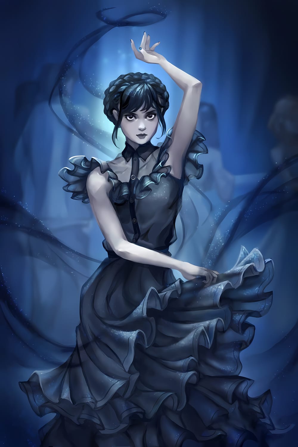 جنا اورتگا با بازی خیره‌کننده‌اش، ونزدی آدامز رو به یکی از محبوب‌ترین شخصیت‌های دهه تبدیل کرد. والپیپرهای پرتره ونزدی، نگاه سرد و هوشمند، لباس‌های مشکی و البته صحنه رقص افسانه‌ای رو نشون میده. بنابراین اگه دوست داری استایل گوتیک و dark aesthetic رو ببینی، این بخش مال خودته!
