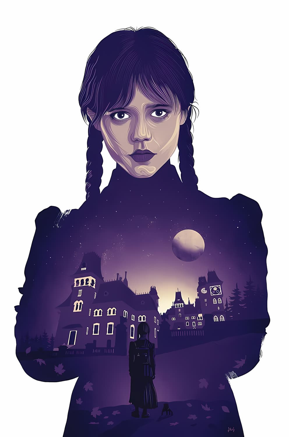 طراحی‌های مینیمال و هنری Wednesday هم یه دنیای جداگانه‌ن. رنگ‌های سیاه-سفید، سایه‌های تیره و ترکیب‌های دراماتیک – همه اینا یه ویبِ خاص و منحصربفرد می‌سازن.
