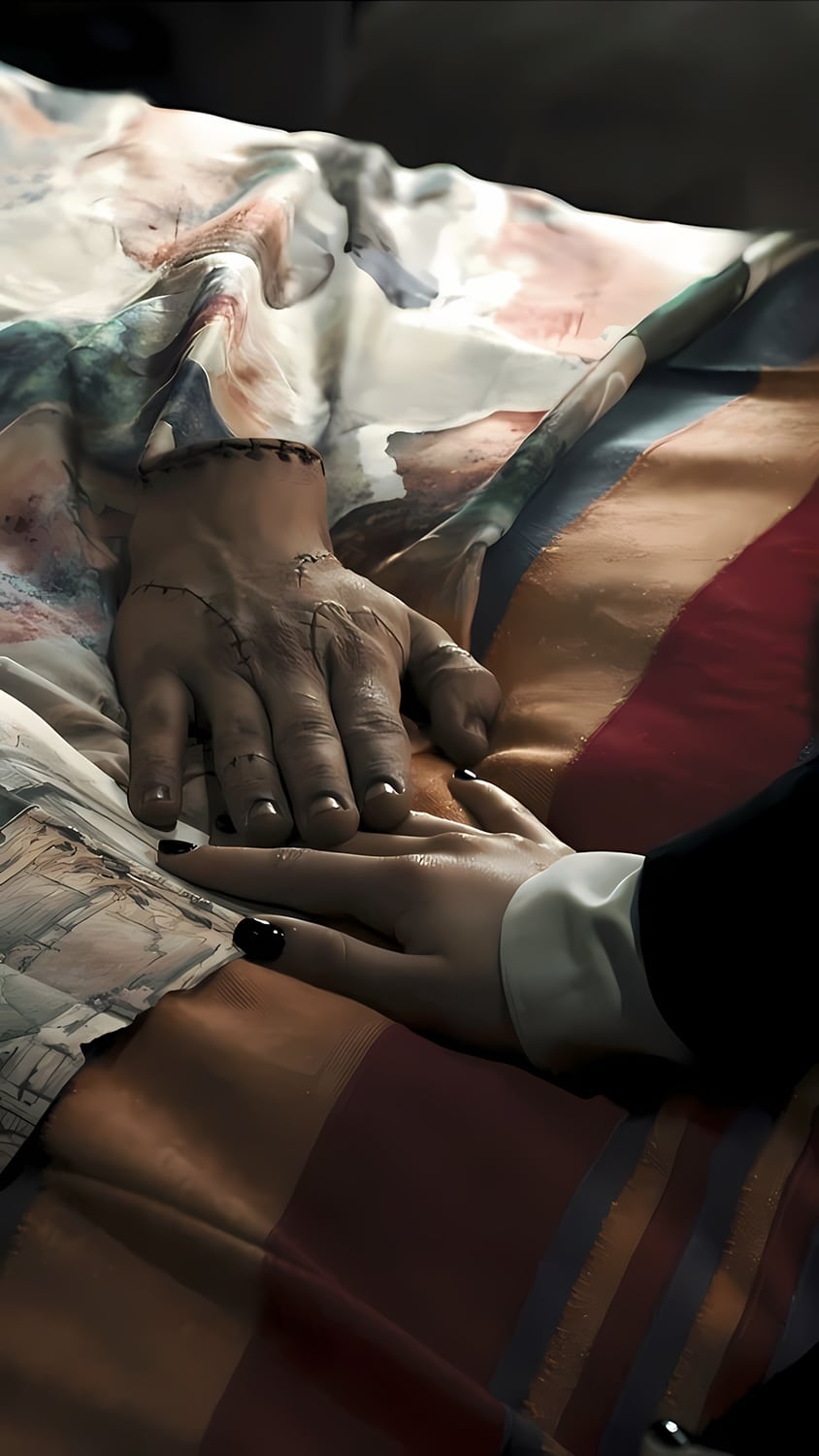 صحنه نمادین ونزدی آدامز با thing والپیپر سریال wednesday